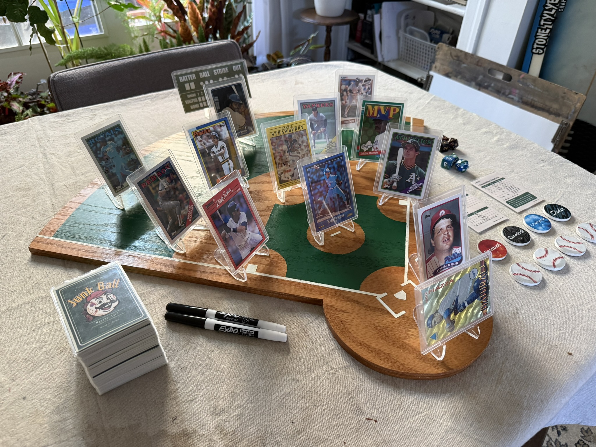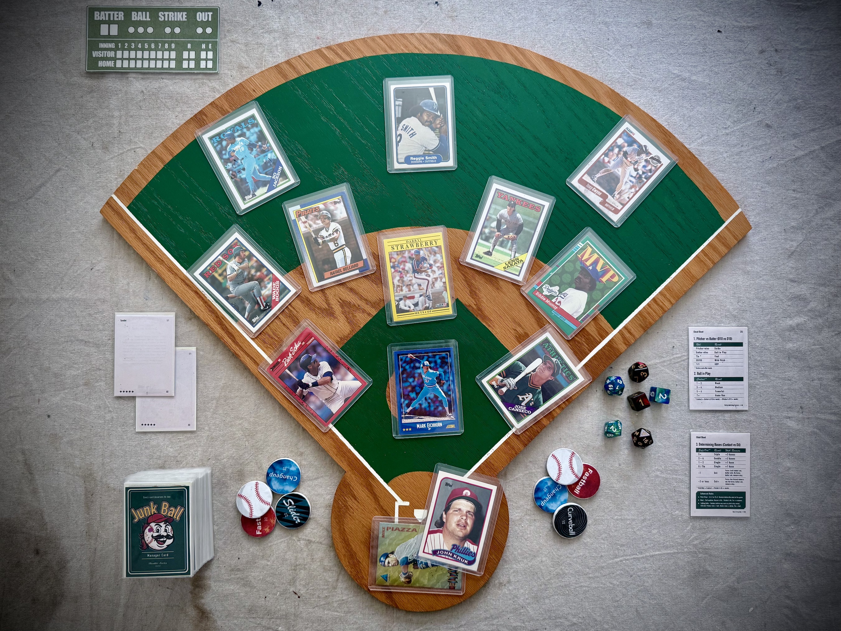 Junk Ball mixes dice rolls with real player histories and stat-boosting Manager Cards, turning pitcher-batter duels, base running, and defensive plays into a tug-of-war between luck and strategy. Junk Ball is fast, fun, and endlessly chaotic.